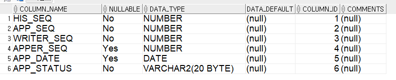 히스토리 테이블은 PK, 결재글 PK, 작성자 ID, 결재자 ID, 결재일, 결재 상태로 구성하도록 하겠습니다.