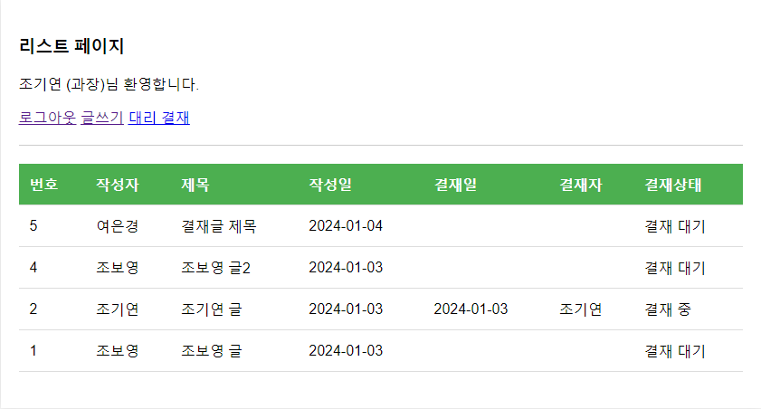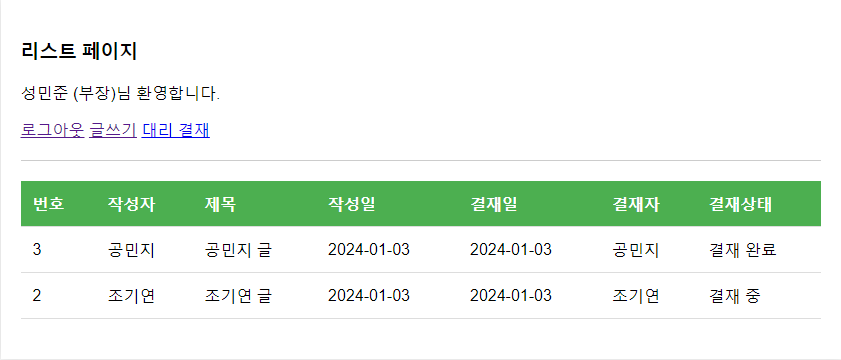- 과장은 결재대기 상태인 글만, 부장은 결재중 상태인 글만 보이도록 합니다.