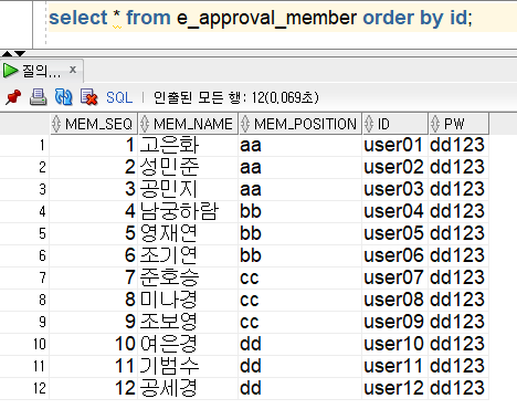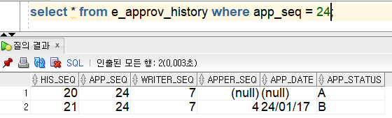 결재자도 잘 바뀌고 반려, 결재코드로 저장 되는 것도 확인했습니다!