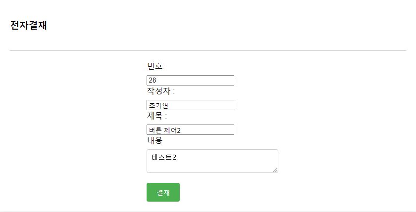 등록자의 요구조건은 글쓰기 화면, 결재자의 요구조건은 글읽기 화면에서 구현이 될 것입니다. 이 때 여러 상황에 따라 다양한 추가 기능을 구현해줘야 합니다. ¹내가 쓴 글을 읽을 때, 내가 반려, 결재 처리한 글을 읽을 때는 두 버튼(결재,반려)이 모두 없어야 하며, ²반려당한 내 글을 수정할 수 있어야 합니다.