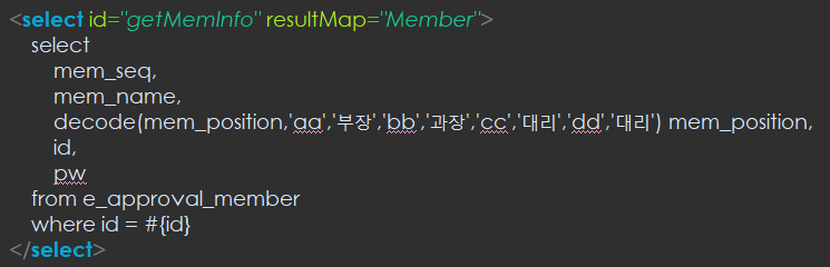 오른쪽 그림의 decode 부분을 보면 'dd','대리' 라고 되어있었습니다. 이를 'dd,'사원'으로 바꿔줬습니다.