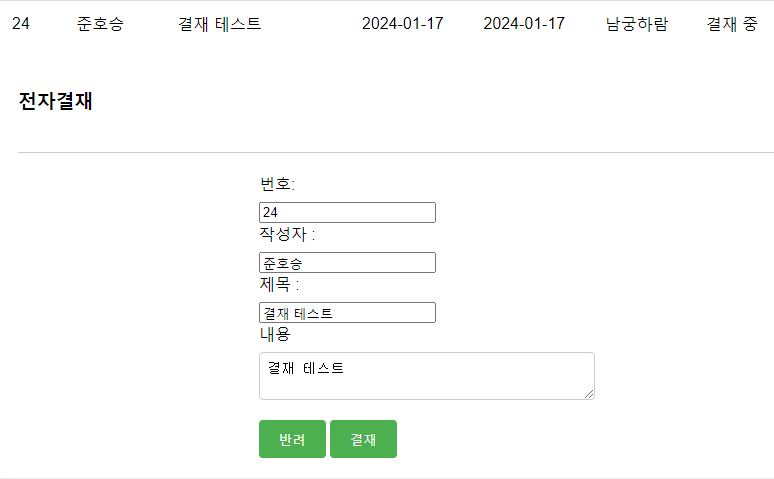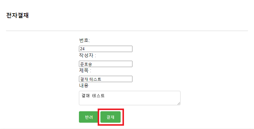 - 결재자 : 반려, 결재 버튼 노출