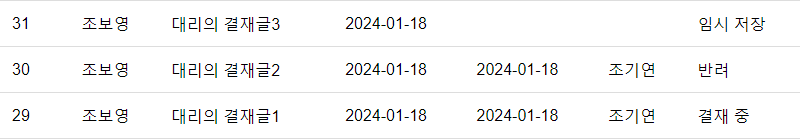- 과장 : 결재 대기인 글만 반려, 결재버튼 노출