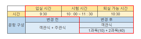 | 회차 | 접수기간 | 수험표발급 | 시험일 | 사전점수 공개 및 재검토 접수 | 결과 발표 |